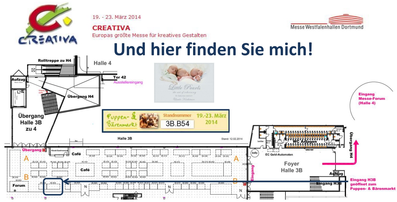 Sehr gefreut habe ich mich über die Nachricht der Westfalenhallen Dortmund GmbH, dass bei der kommenden CREATIVA im März 2013 nunmehr auch dem Thema realistische Babypuppen ein fester Platz eingeräumt wird. Unter der Überschrift "Puppen- und Bärenmarkt" werden vom 16.-17.03.2013 erstmals auch Reborn-Babypuppen zum Bestandteil von Europas größter Messe für kreatives Gestalten gehören.