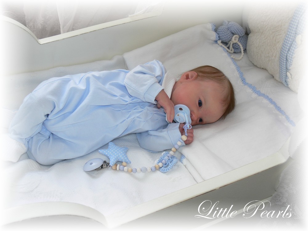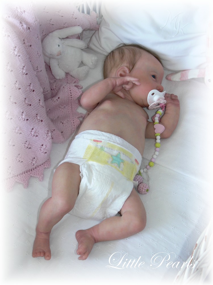 Diese kleine Perle ist entstanden aus dem Reborn-Kit "Aurora-Sky" von Laura Lee Eagles. Ich konnte mich einfach nicht entscheiden, ob es ein Junge oder ein Mädchen werden sollte - ich finde es geht beides. Die Bauchplatte ist die für ein Mädchen. Für einen kleinen Jungen gibt es leider keine Bauchplatte.
