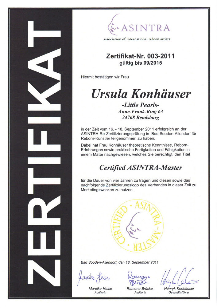 Im Laufe der Jahre erhielt ich zahlreiche Auszeichnungen für meine Arbeiten. Neben Wettbewerbserfolgen und anderen Ehrungen ist mir jedoch die erst im September 2011 bestandene Prüfung vor einer unabhängigen Audit-Kommission zum "Certified ASINTRA-Master" mit Abstand am wichtigsten.