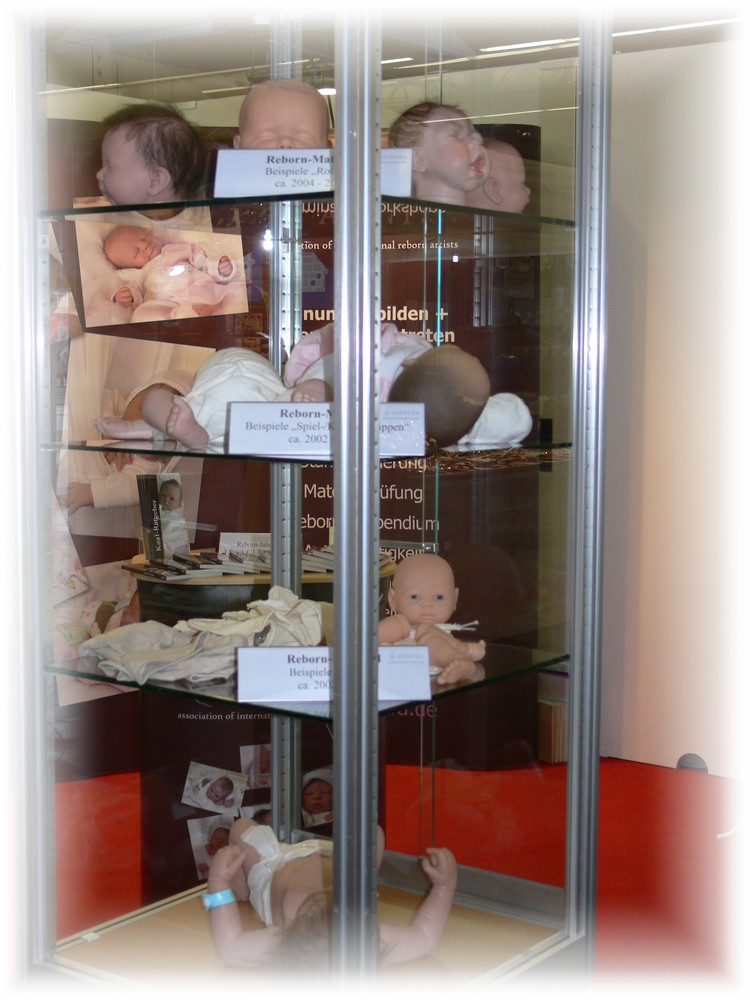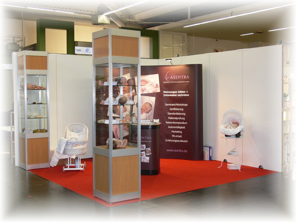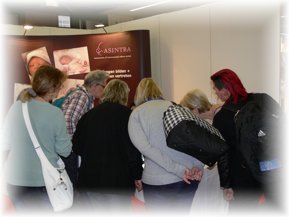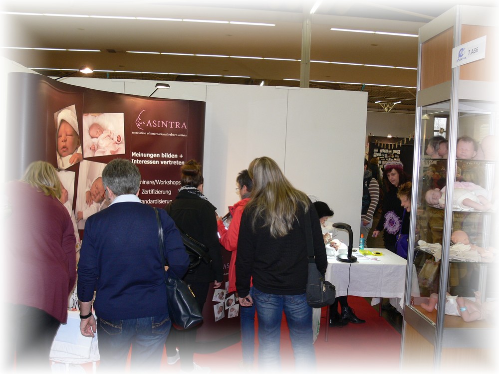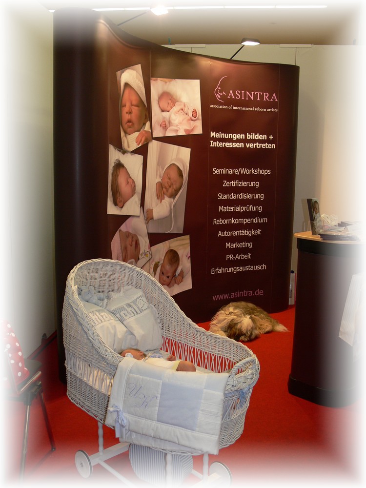 In diesem Jahr habe ich zusammen mit meinem Mann den Standdienst für ASINTRA übernommen und auf einen eigenen Ausstellungsstand verzichtet. Ganze 5 Ausstellungstage lang haben wir das "Making Off" sowie die unterschiedlichen Anwendungs- und Einsatzbereiche von realistischen Babypuppen einem überwiegend "puppenentfernten" Publikum präsentiert.