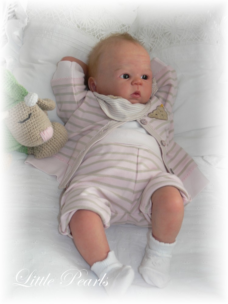 Die kleine Frida entstand aus dem Reborn Kit "Bailey", ursprünglich modelliert von Sandriene (Sandy) Faber. Die kleine Perle wird mich in wenigen Wochen mit zur CREATIVA nach Dortmund begleiten.