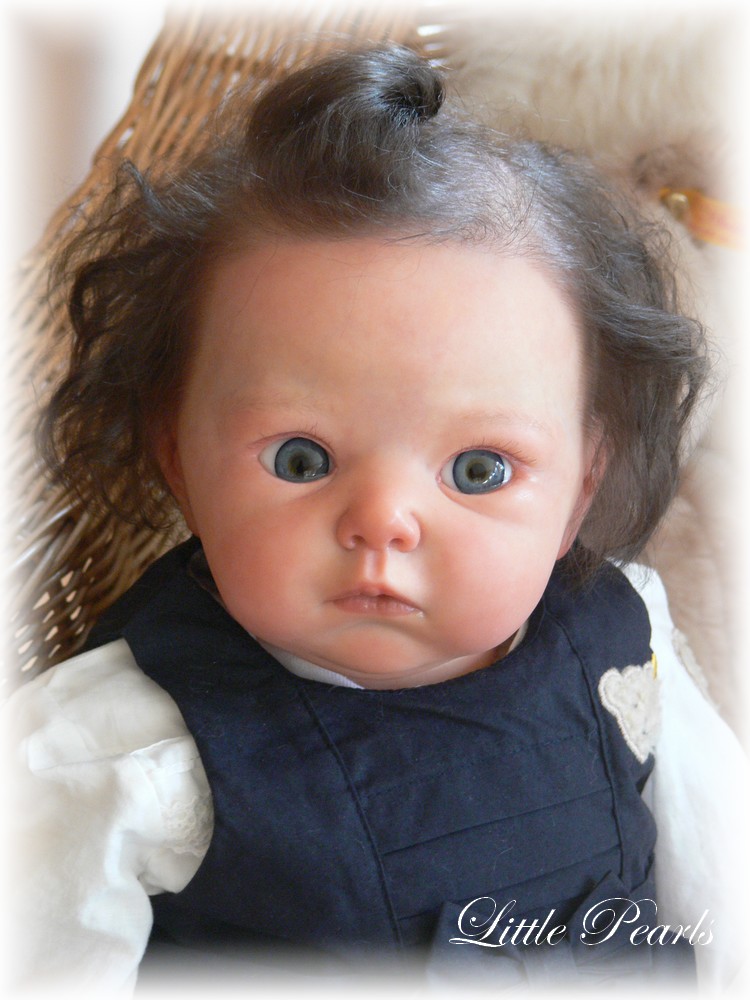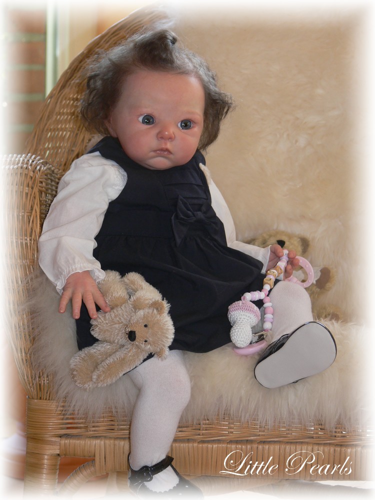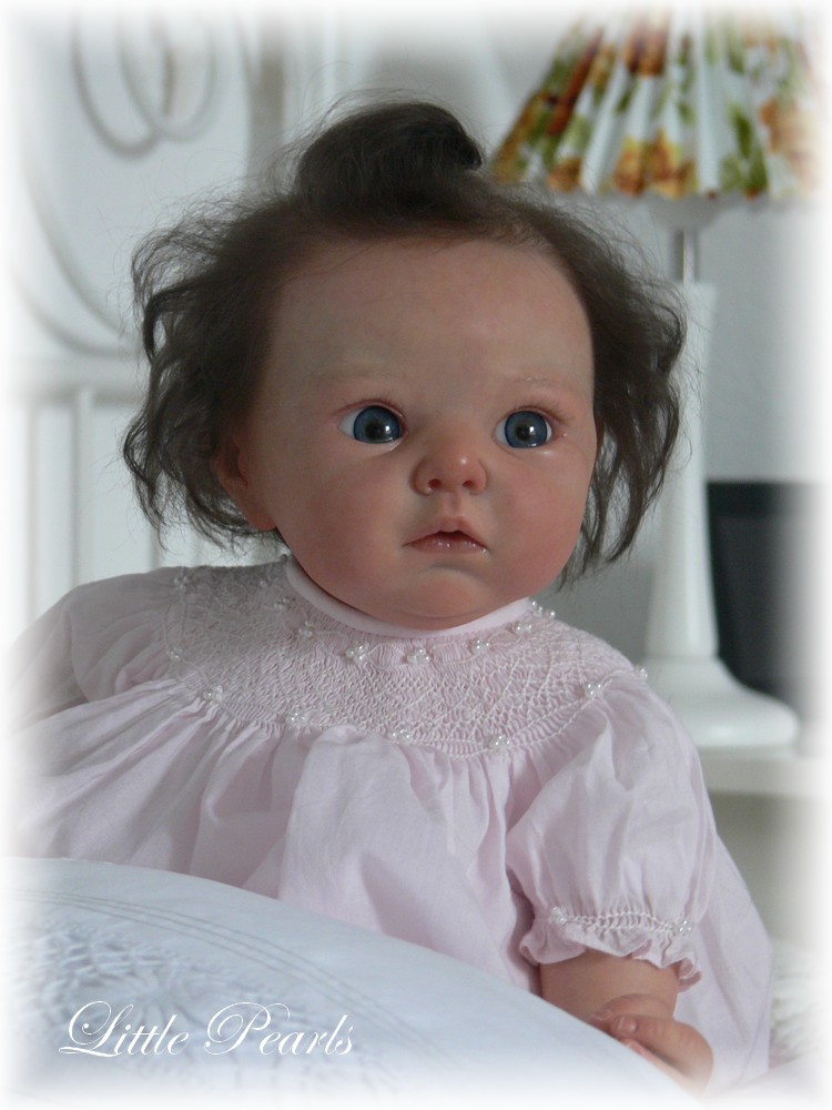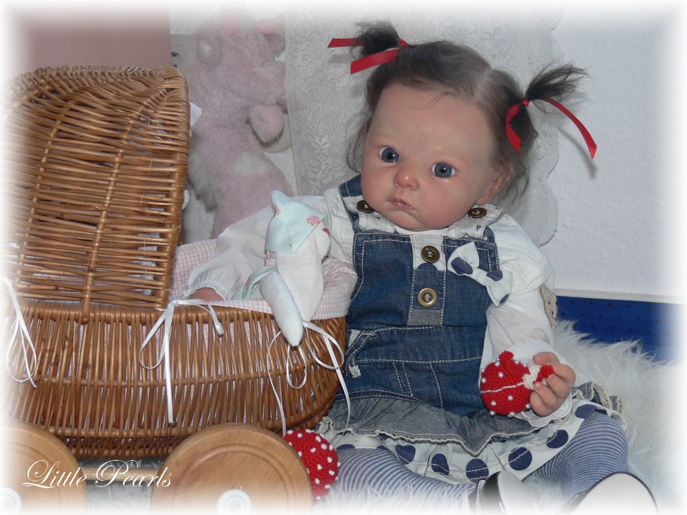 Hier eine weitere kleine Perle, die mich zu den Puppenfesttagen 2013 nach Eschwege begleitet und dort ein neues Zuhause gefunden hat- Lola. Nach langer Zeit habe ich wieder einmal eine etwas größere Babypuppe gestaltet. Das von Adrie Stoete-Schuitemann modellierte und produzierte Modell ist ca. 62cm groß.