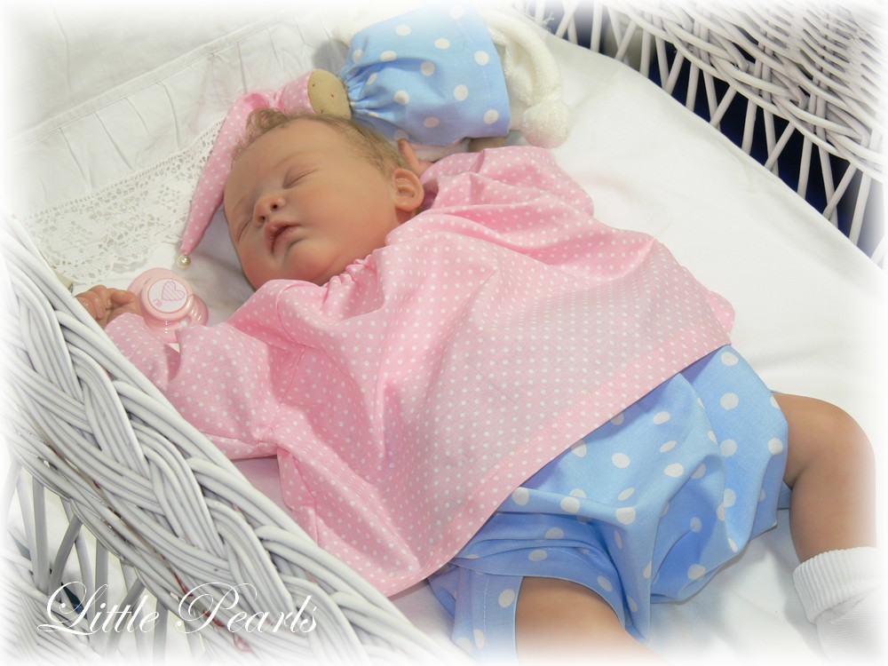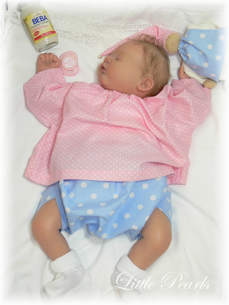 Eine ganz besondere kleine Perle ist Tanja. Das Modell von Gudrun Legler ist schon sehr lange restlos ausverkauft. Bereits Anfang 2012 habe ich zusammen mit meiner lieben Rebornkollegin, Jana Günther (Heavenly Illusions), für ein geplantes Reborn Workbook gestaltet. Die kleine Perle hat in Österreich ein neues Zuhause gefunden.