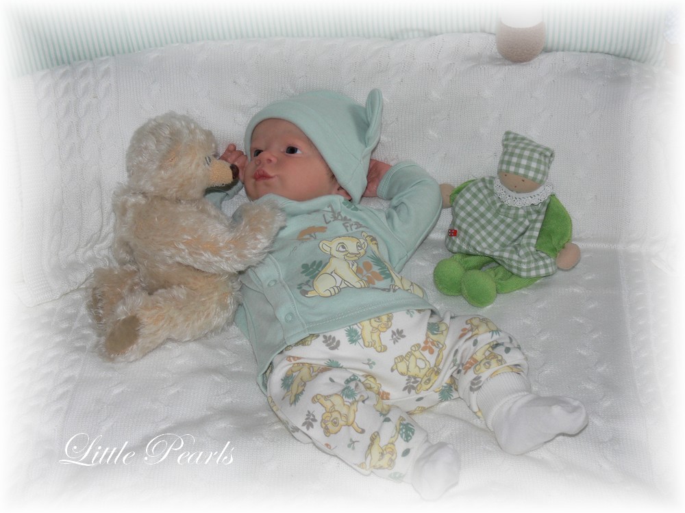 Ein neues Perlchen liegt in der Wiege: Christopher Awake. ein Realborn Modell von Bountiful. Der kleine Mann ist ein Auftragsbaby und er wird schon bald sein neues Zuhause kennenlernen.